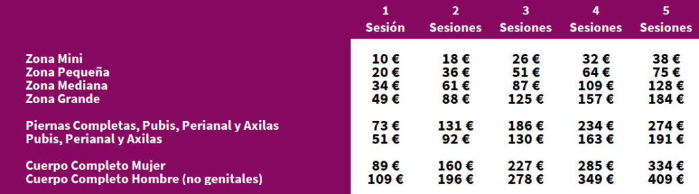 Tarifas Depilación